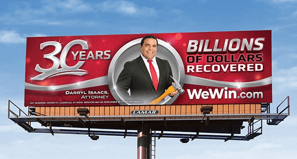 It was not that exceptional. Personal injury lawyers advertise on billboards all the time. Darryl Isaacs, the lawyer in question, advertises pretty widely across Indiana and a few neighboring states to build his business, and tha tmakes sense, but I thought that the image of him was strange.